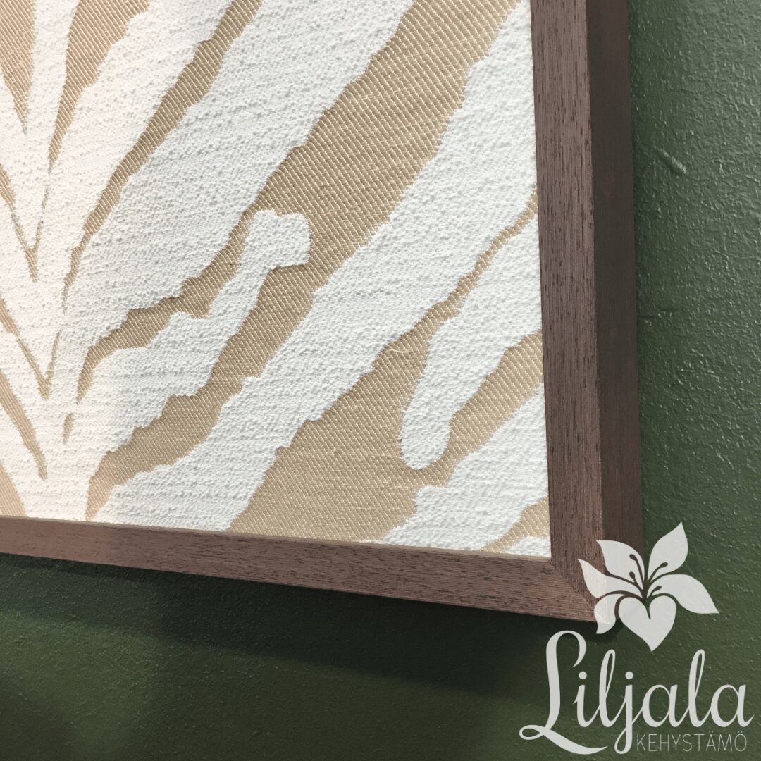 Oli kyseesä koti, toimisto tai julkinen tila, tekstiilitauluilla saadaan yhtenäinen ja upea taulukokonaisuus. Kehystetyt sisustustaulut tuovat tilaan viihtyvyyttä ja juuri oikeanlaista tunnelmaa ja harmoniaa.