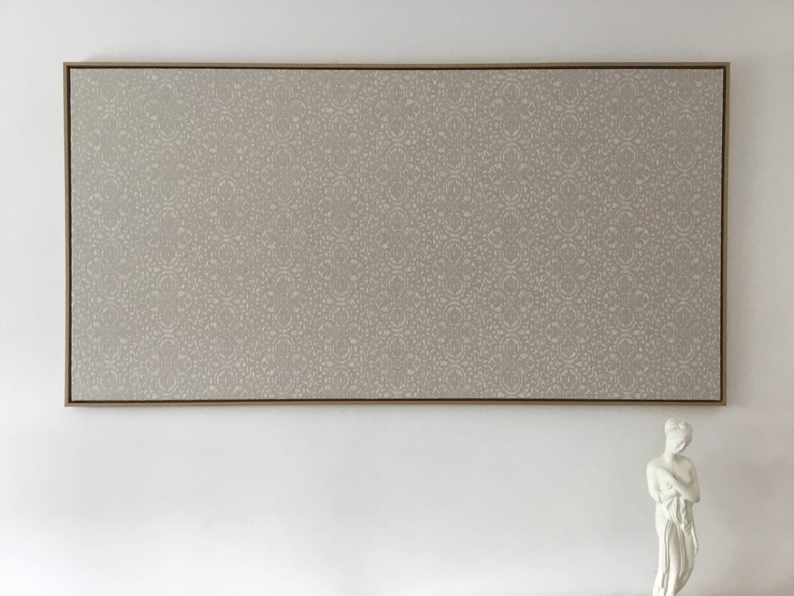 Sisusta näyttävästi tekstiilitaululla. Annalan kangaskutomon valmistama Makrame-kangas ja laadukas tamminen tilakehys. Tilauksesta myös muilla kehysvaihtoehdoilla. Koko 90x180cm. Upea kankainen sisustustaulu parantaa kotisi akustiikkaa ja viihtyvyyttä. Nouto liikkeeltä tai toimitus Suomeen.